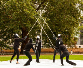 TEAMbauImpulsgebend für die Performancegruppe TEAMBau in Celle/Niedersachsen war das 100jährige Bauhaus-Jubiläum 2019. "Die Welt neu denken" war das Motto der 1919 von Walter Gropius gegründeten Kunstschule Bauhaus in Weimar.Frank Niemöller und Liliane Steinke brachten unterschiedlichste Menschen mit der Neugierde am kreativen Ausdruck und Lust an Bühnen-und Outdoorperformances zusammen und gründeten TEAMBau. Bewegung/Tanz, Musik, Bildende Kunst/Videoanimation, Objekt-Art, Sprache und Literatur...sind die künstlerischen Mittel mit denen auf regelmäßigen Bodywork- und Workshoptreffen die Performances entstehen. Die Mitakteure gestalten die thematische Ausrichtung der Stücke immer mit.TEAMBau ist die Celler Performacegruppe in Kooperation mit der vhs Celle und TAPO e.V.2025- Seid Menschen